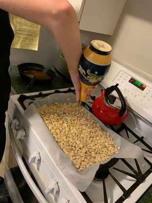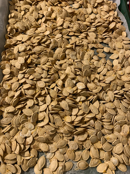 Pre-heat oven to 250 degrees. Line a baking sheet with parchment paper, drain and lay the seeds.