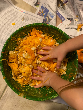 Have an adult help you cut your shapes out of the pumpkin to create a face or design.