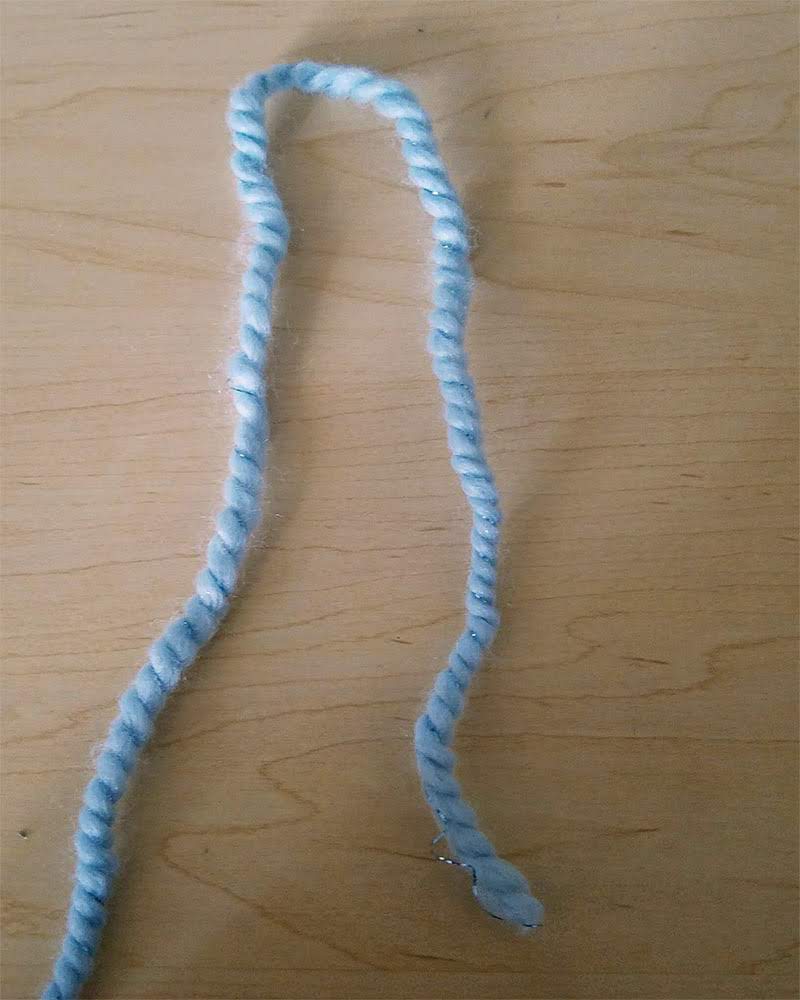 First, you’ll want to locate the tail of your yarn and set it onto a flat surface in the shape of an upside-down U.
