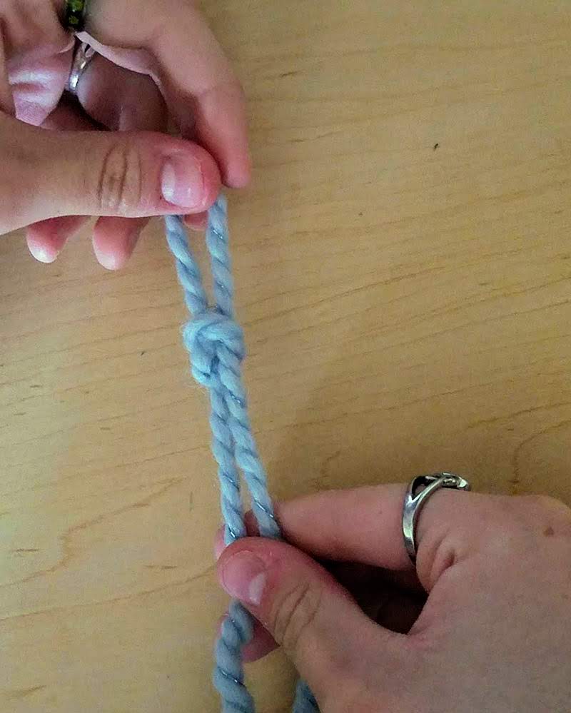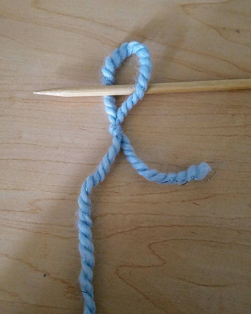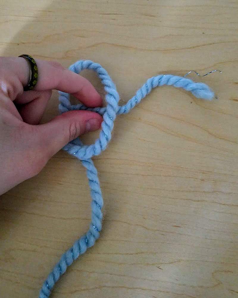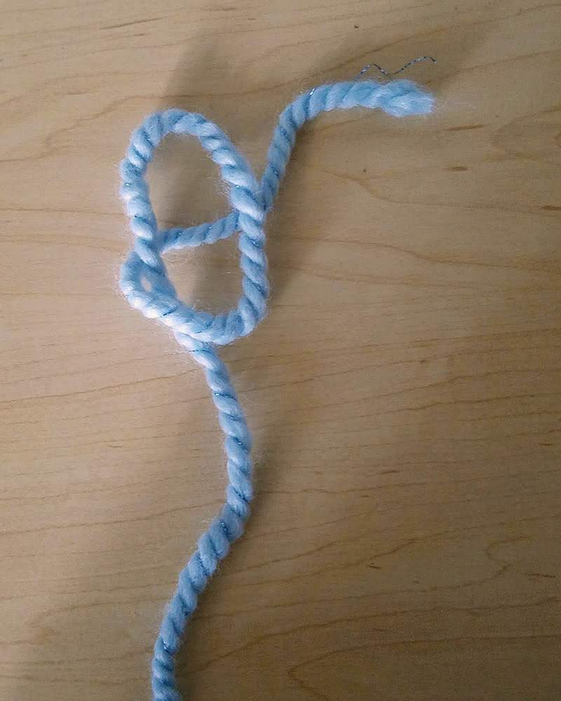Cross the tail of the yarn over itself, forming a loop.