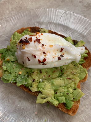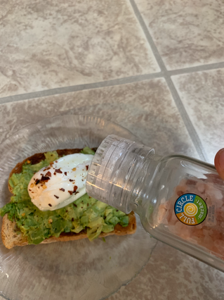 Take egg, and place that on top of the avocado.