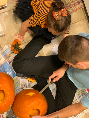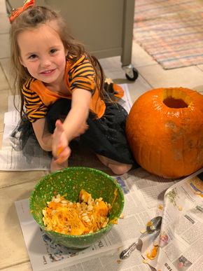 Have an adult help you cut your shapes out of the pumpkin to create a face or design.