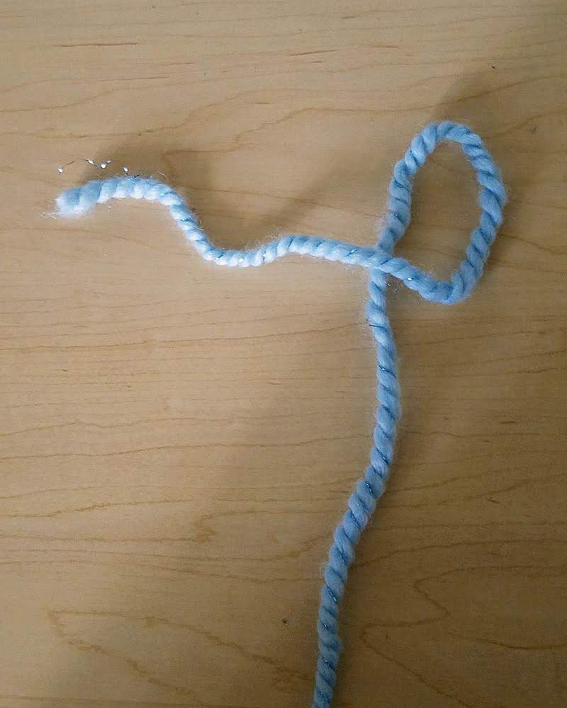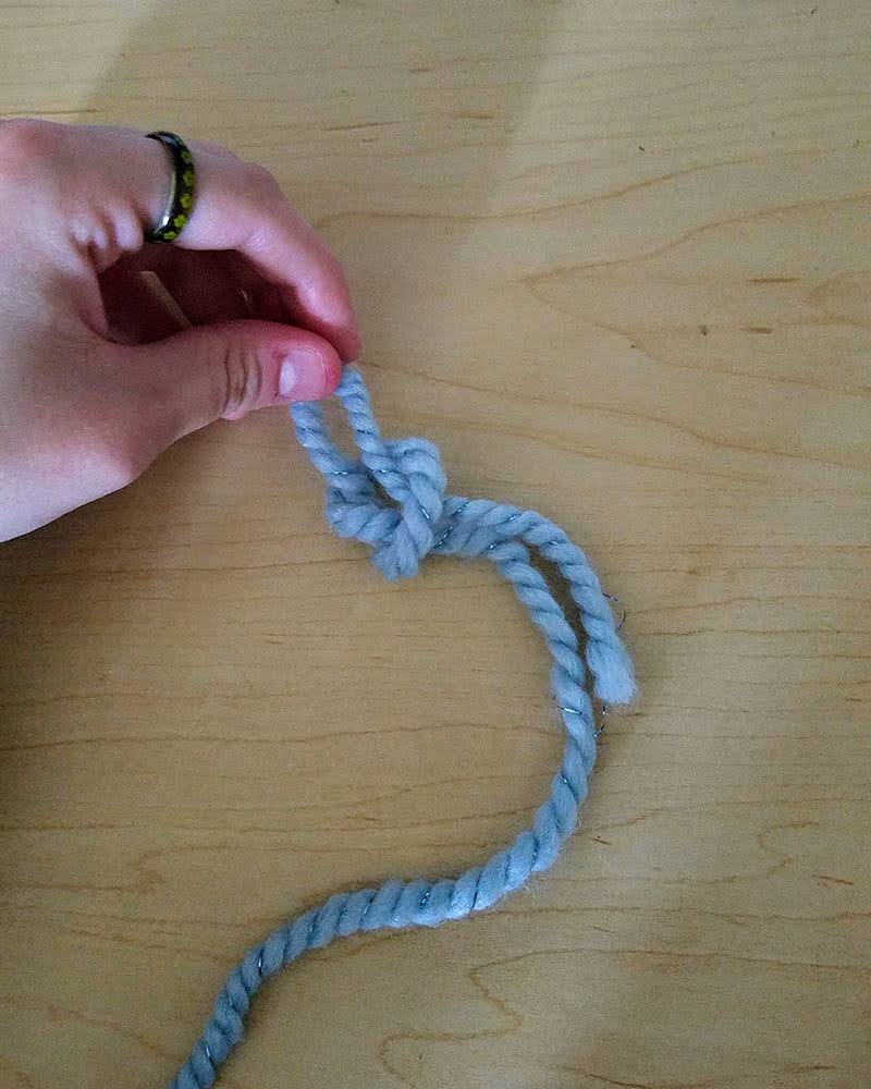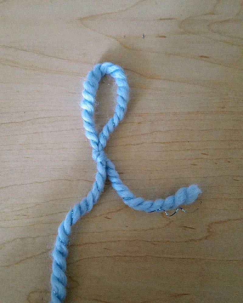 Cross the tail of the yarn over itself, forming a loop.