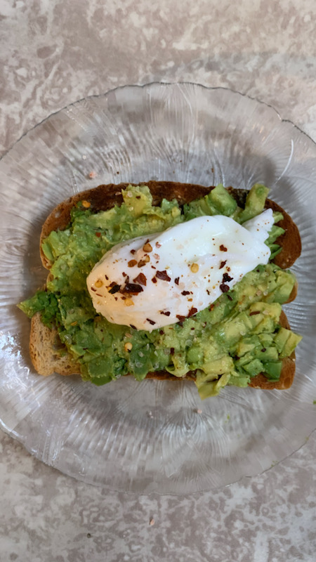 Take toast, put onto plate, and place/spread the avocado on top.