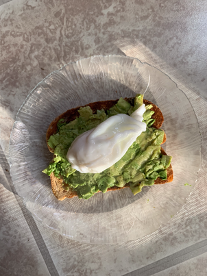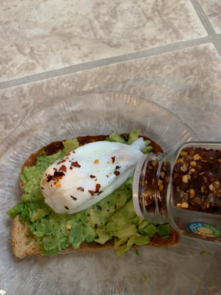 Take egg, and place that on top of the avocado.